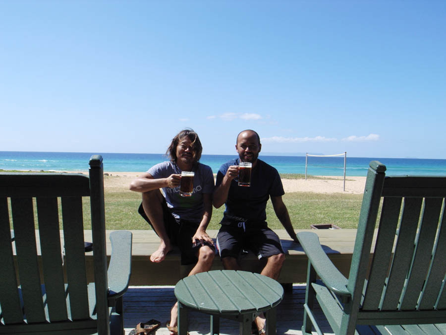 波乗り後、ぜひ教教祖トムくんとぜひ教広報部長の俺で2ショット。